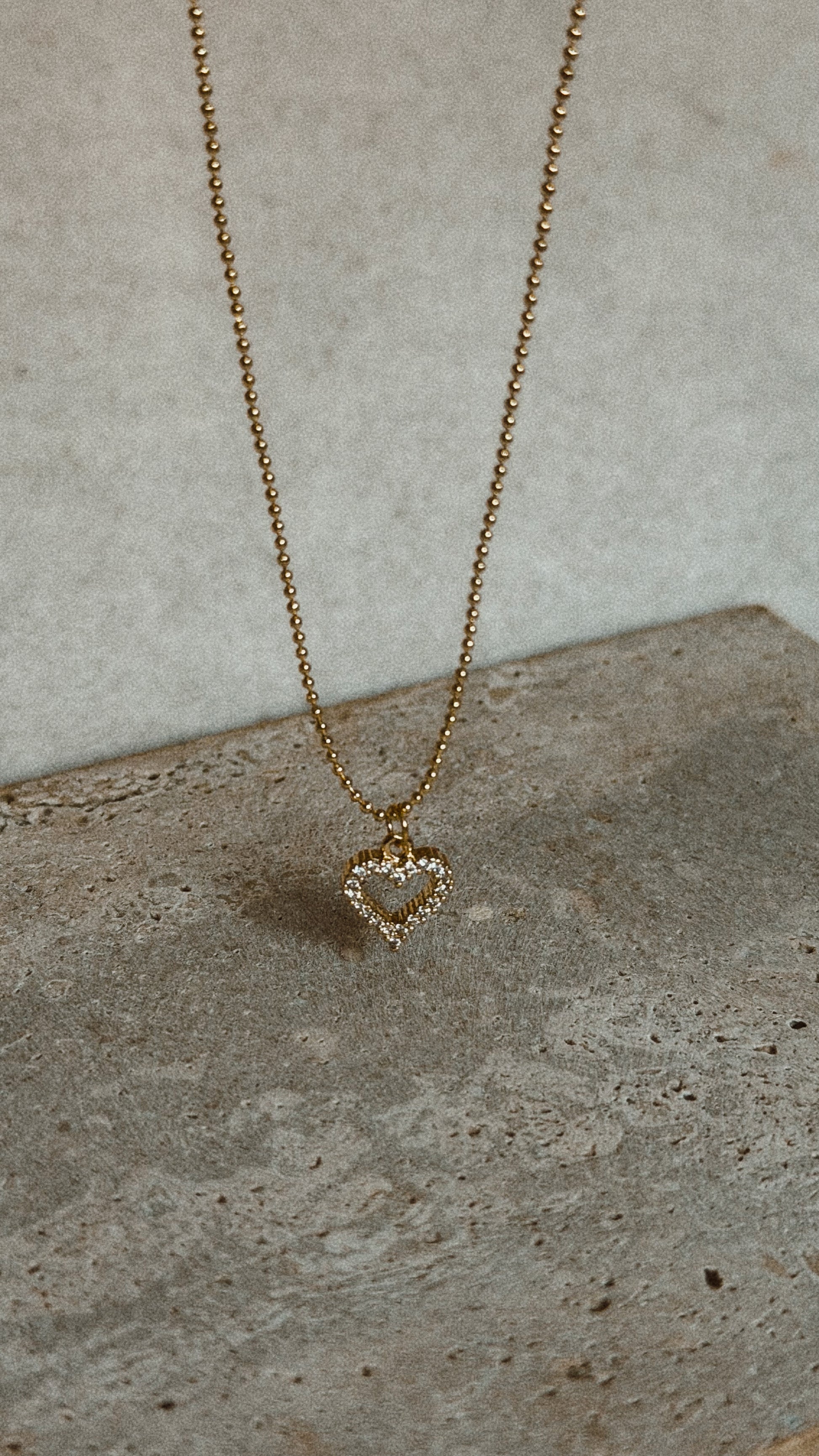 Este delicado collar con borde de corazón y circones brillantes es el complemento perfecto para realzar cualquier look. Su diseño femenino y sofisticado refleja amor, elegancia y sutileza, ideal para usar a diario o en ocasiones especiales.