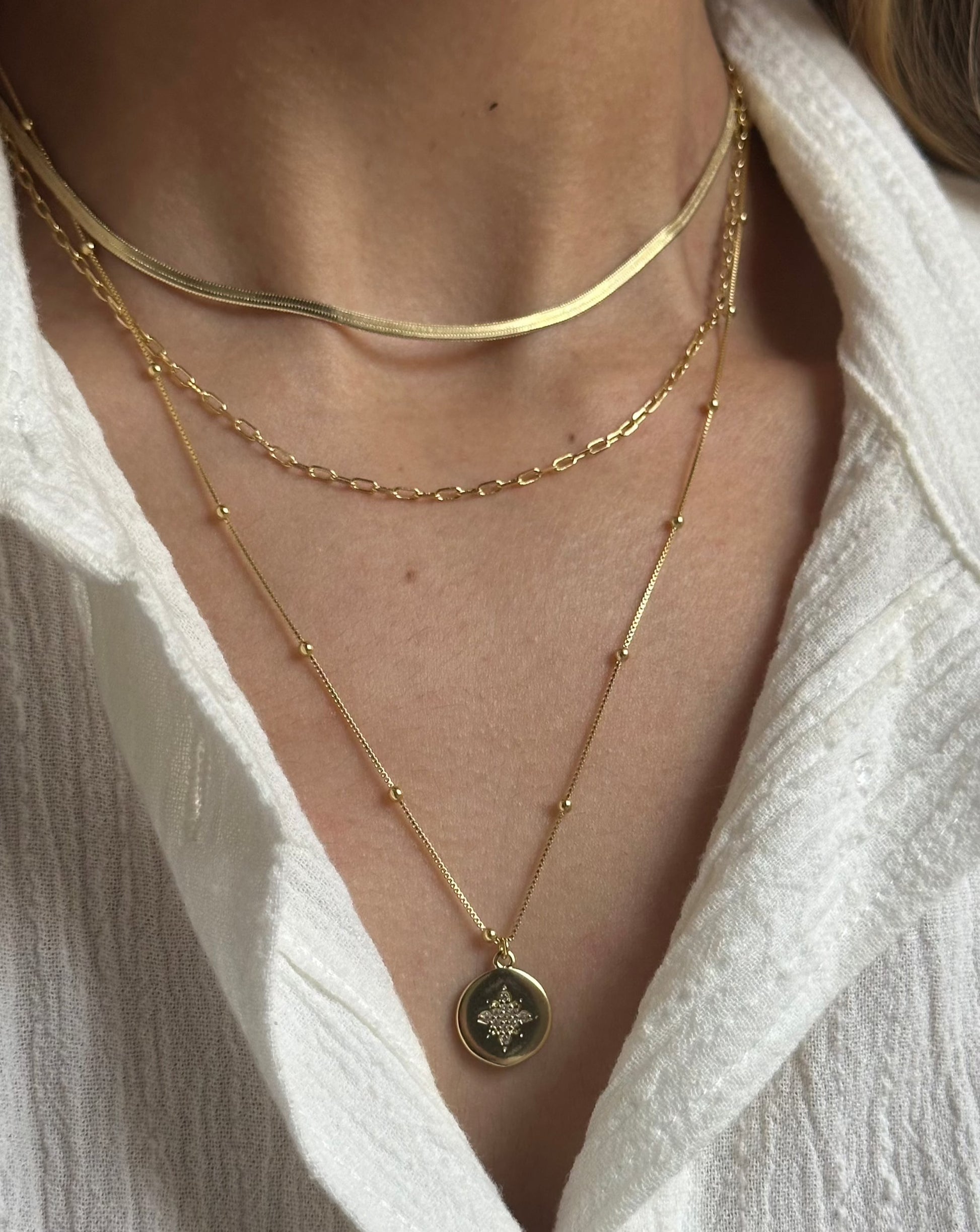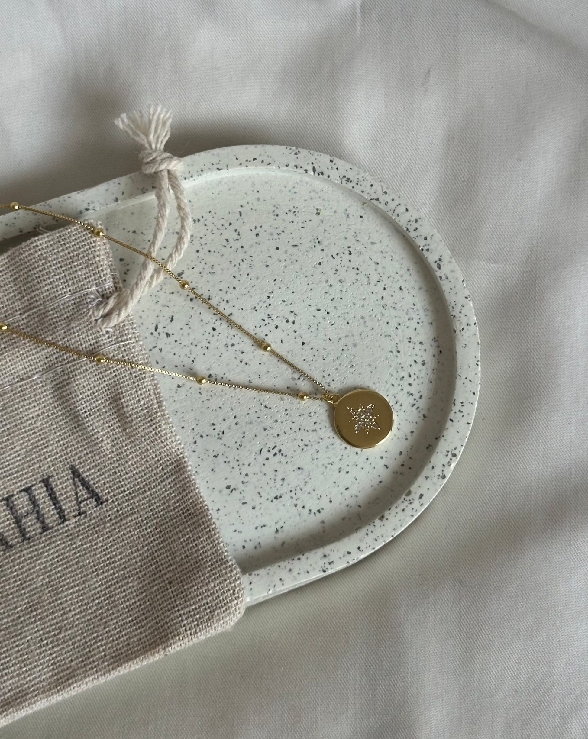Descubre la magia en cada detalle con nuestro collar estrella guía. Con un dije delicado que simboliza la orientación en tu camino, este collar mide 45 cm es la joya perfecta para iluminar tu estilo con un toque celestial.