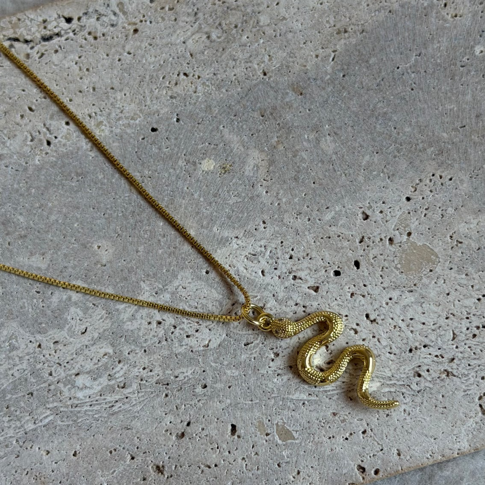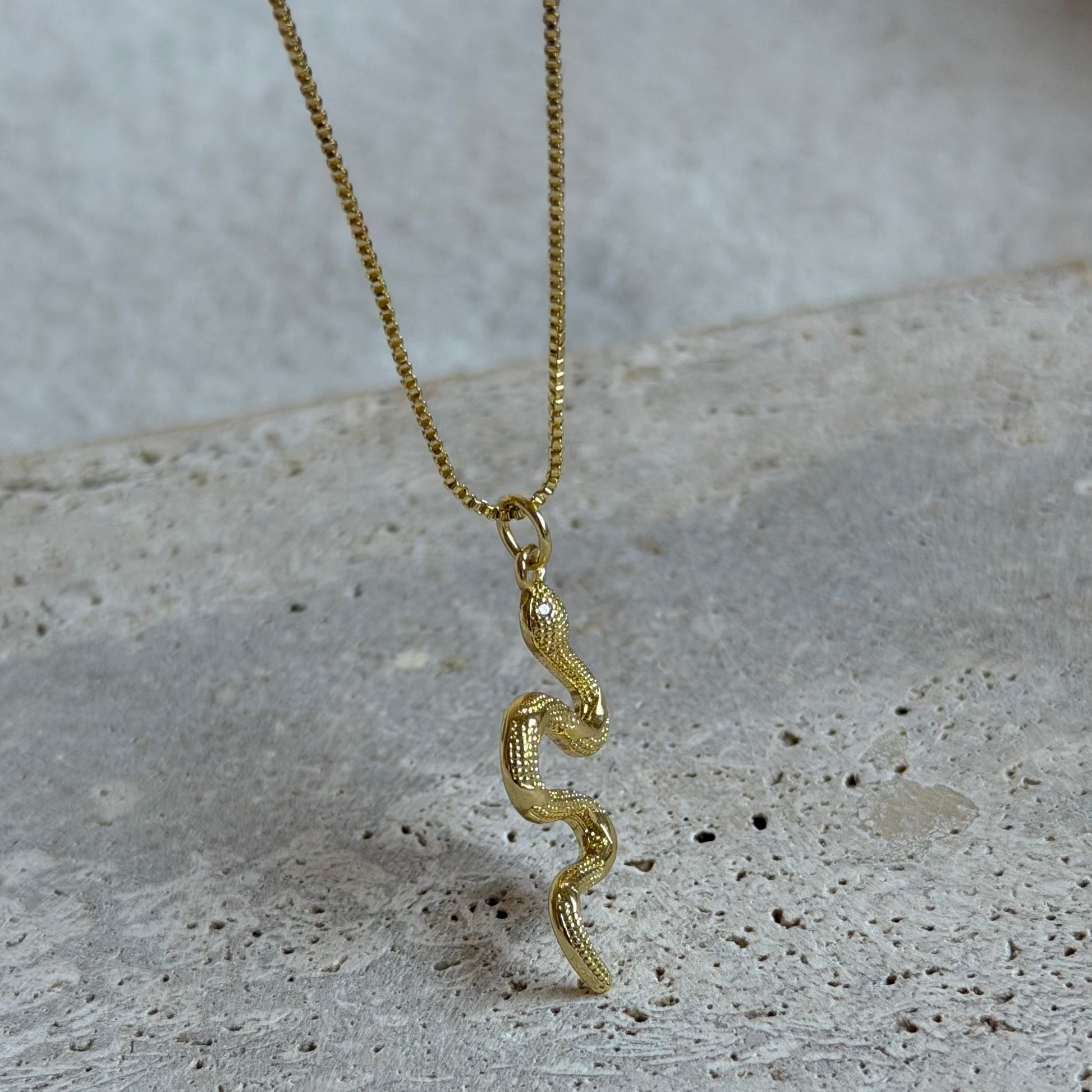 Collar con cadena veneciana y colgante de serpiente con circones, bañado en oro 18K.