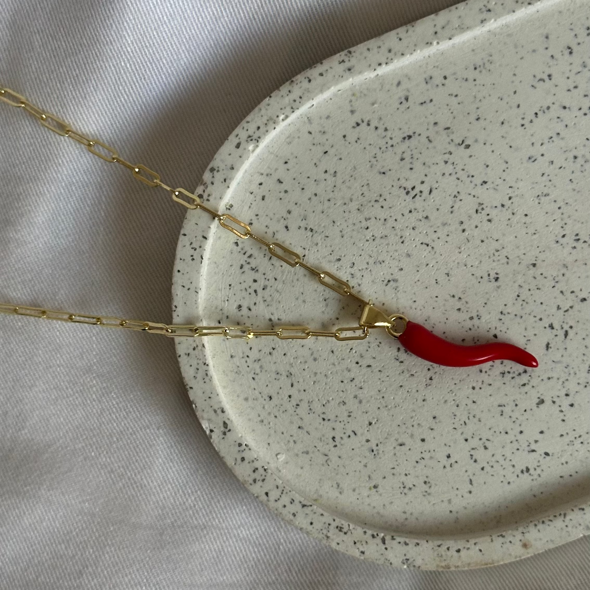 Destaca con estilo con nuestro collar de ají. Con una longitud de 45 cm más 5 cm de extensión, esta pieza vibrante en color rojo es perfecta para añadir un toque de energía y tendencia a tu look. Ideal para cualquier ocasión, este collar es el accesorio que necesitas para resaltar y brillar. ¡Hazlo tuyo!