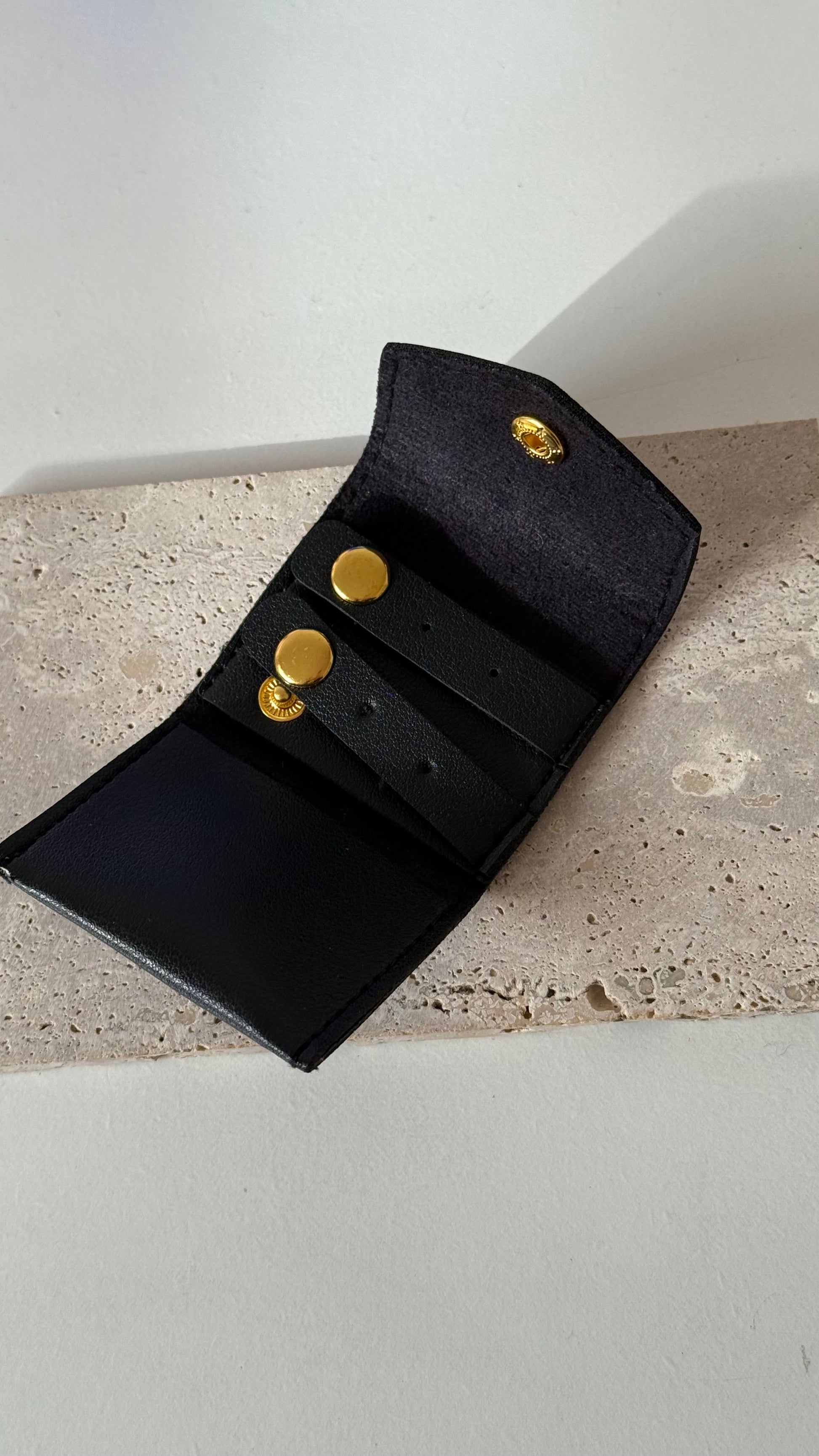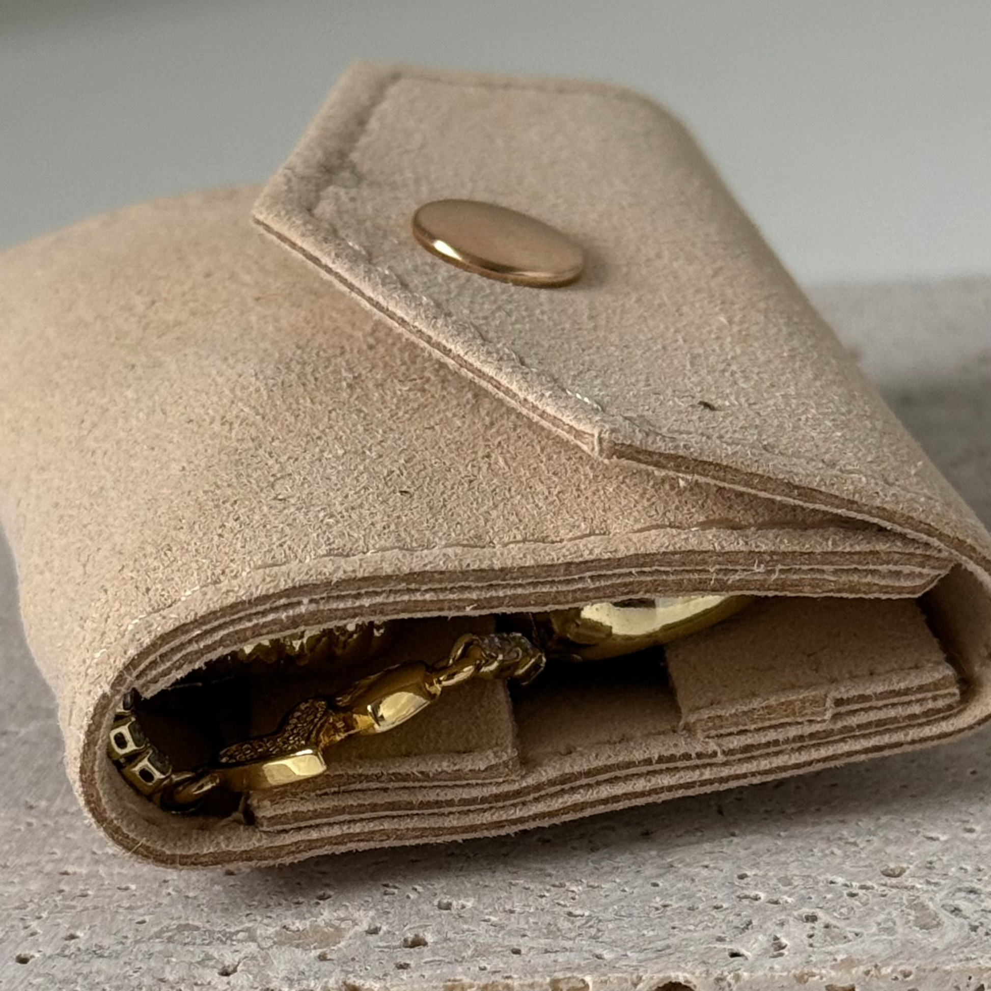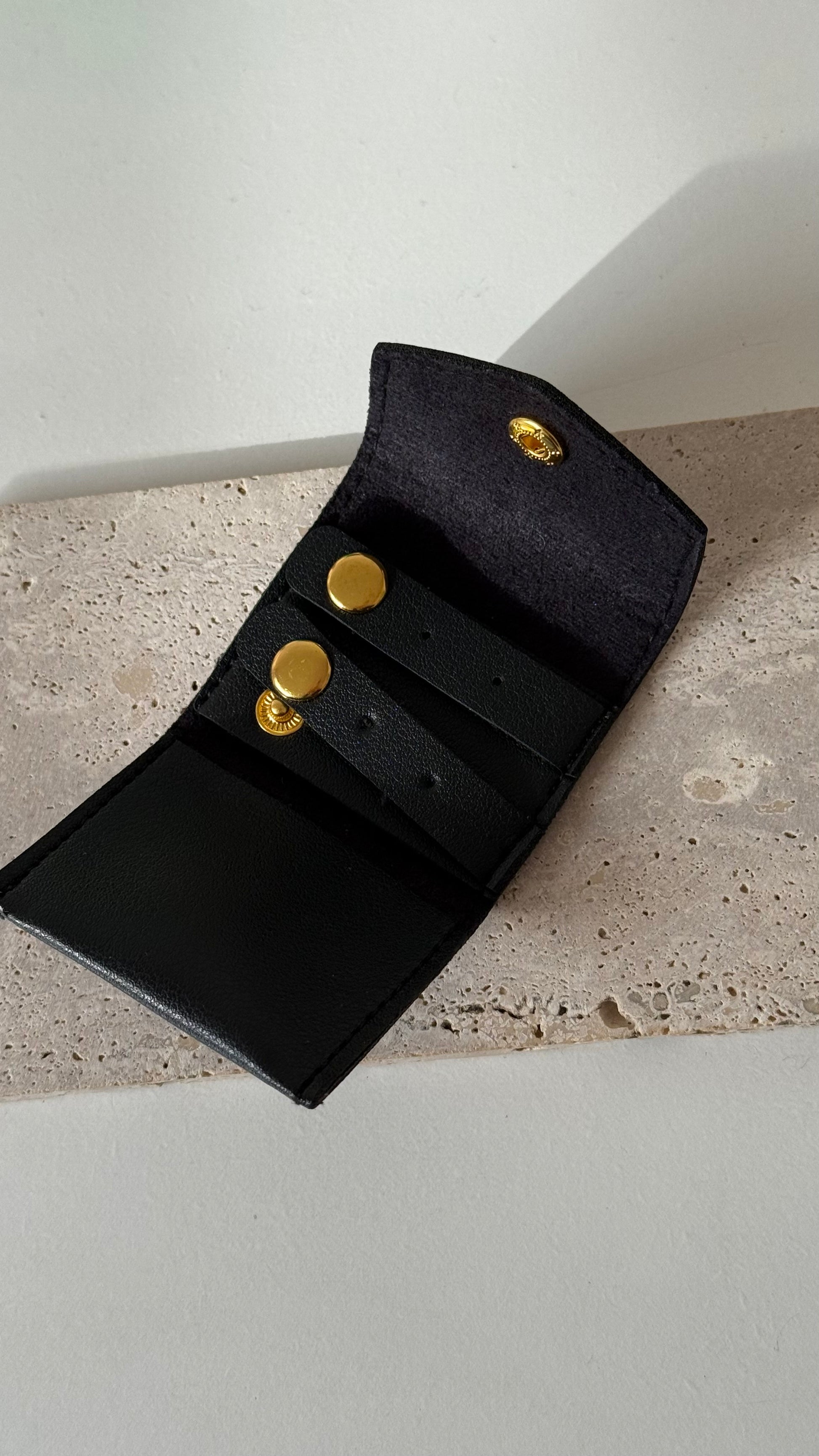 Lleva tus joyas favoritas contigo de forma segura y con estilo. Este joyero de viaje, compacto y ligero, cabe perfectamente en tu cartera o equipaje, manteniendo tus accesorios organizados y libres de enredos. Ideal para viajes, escapadas o el día a día.
