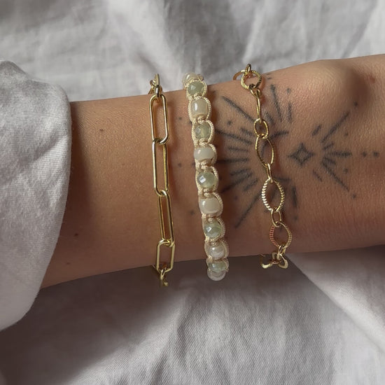Esta pulsera de eslabones bañada en oro de 18k es una joya elegante y sofisticada. Cada eslabón está cuidadosamente diseñado y conectado para crear una cadena fuerte y duradera. El baño de oro de 18k le da un brillo intenso y una tonalidad dorada y lujosa.