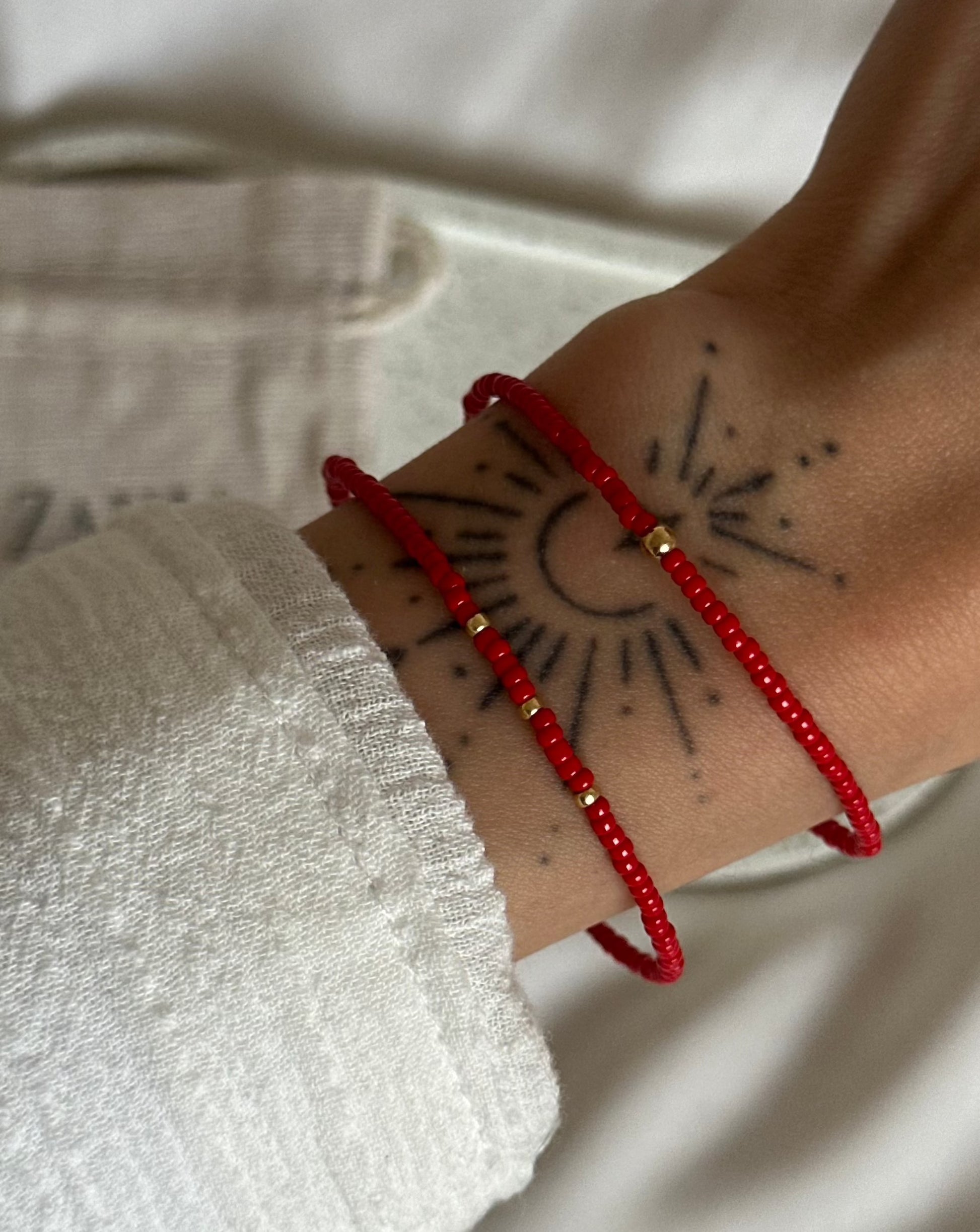 Nuestras pulseras de 19 cm, con cuentas de Miyuki, son confeccionadas a mano con meticulosidad, realzando su belleza única. El extensor de 5 cm, bañado en oro de 18k, brinda ajuste y un toque de elegancia. Estas pulseras artesanales son el accesorio perfecto para añadir estilo a tu día con su encanto hecho a mano y su brillo distinguido.
